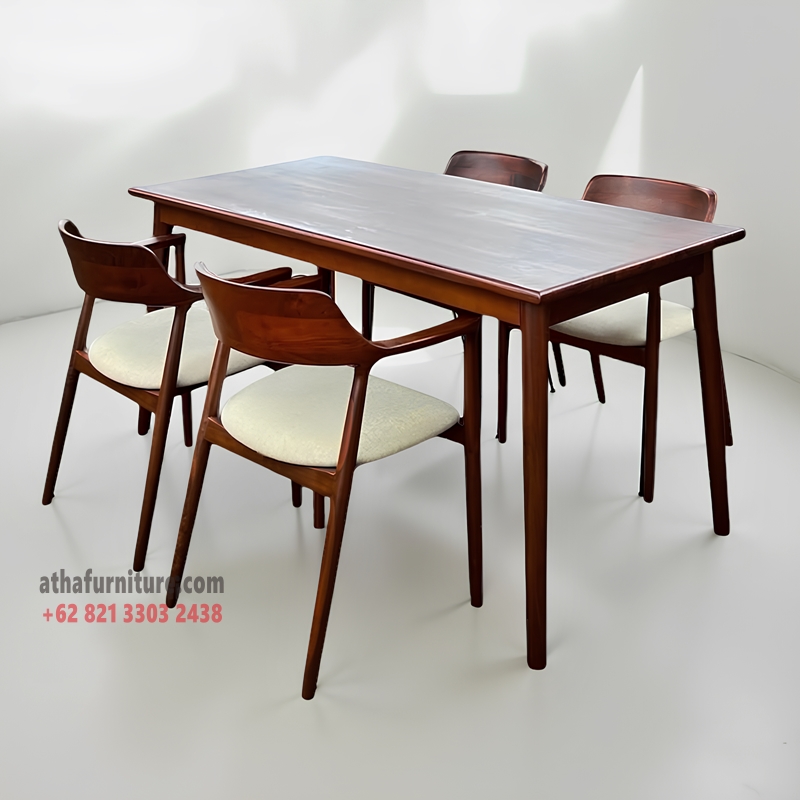 This elegantly designed dining table set for Bulgaria consists of a long table and four dining chairs made of high-quality teak wood, with the addition of foam upholstery on the seats. Crafted with precise details and smooth finishing by experienced craftsmen from a furniture manufacturer located in Jepara, Indonesia, known as the world’s center of teak wood furniture. This dining table set is the right choice to bring a luxurious, warm, and durable feel to the dining room. Made with sturdy construction and an ergonomic design, which will beautify the interior of the house and provide optimal comfort when gathering with family or entertaining guests.