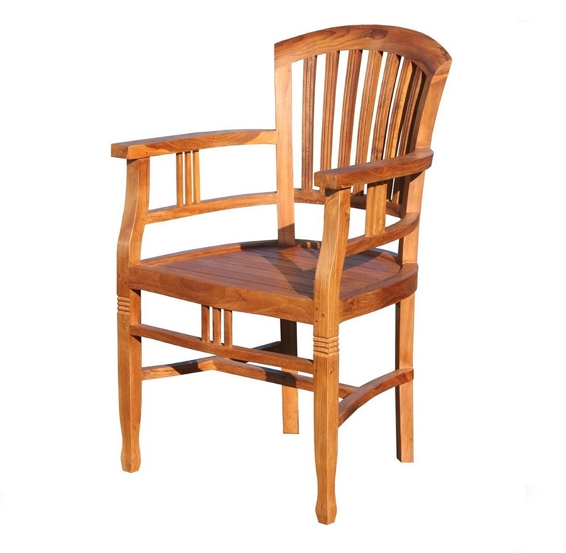Teak arm dining chairs provide comfort when sitting to eat a meal in your dining room. Designed with a sturdy construction of high quality teak wood material with a comfortable backrest. We have various models of dining chairs with different materials, designs and sizes. Trust us for your residential furnishing needs and interior projects.